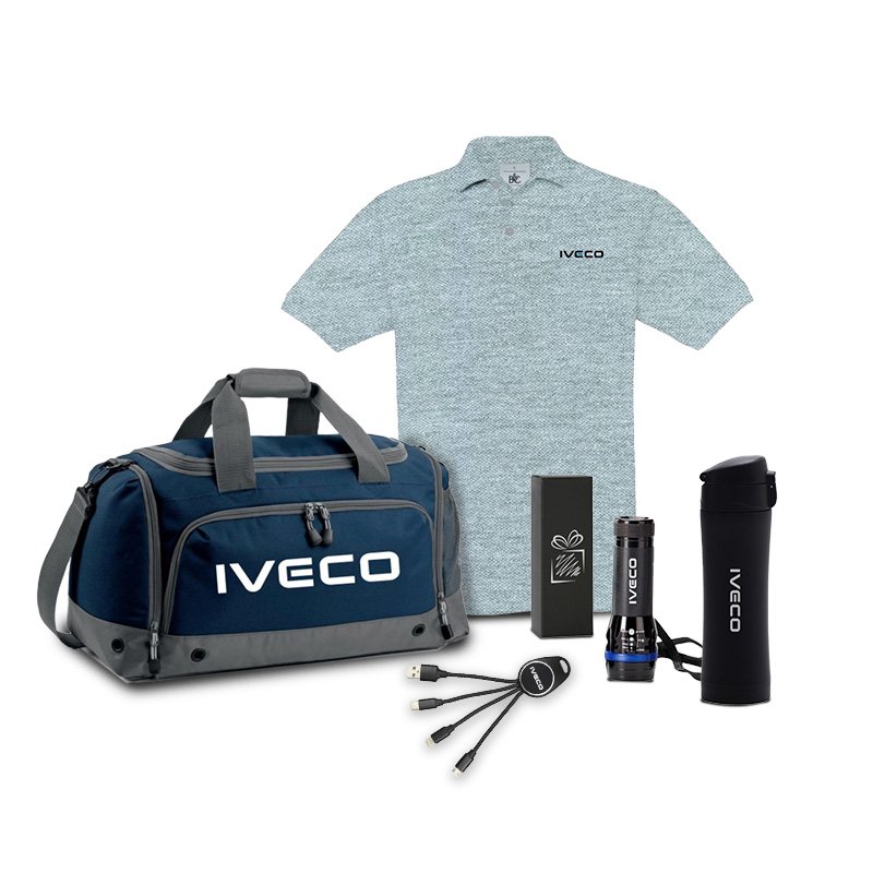 Pakiet Kierowcy IVECO Daily to starannie skompletowany zestaw oryginalnych akcesoriów sygnowanych logotypem IVECO, zaprojektowany z myślą o profesjonalnym doposażeniu stanowiska pracy. Zestaw ten stanowi gotowe rozwiązanie dla dealerów oraz menedżerów flot, którzy pragną podnieść standard wydawanego pojazdu lub zapewnić załodze funkcjonalne narzędzia codziennego użytku. W skład Pakietu Kierowcy Daily wchodzą kluczowe akcesoria wspierające pracę i odpoczynek w trasie: pojemna torba sportowo-podróżna, kubek termiczny, wielofunkcyjny multikabel USB, latarka LED z funkcją stroboskopu oraz klasyczna koszulka Polo.